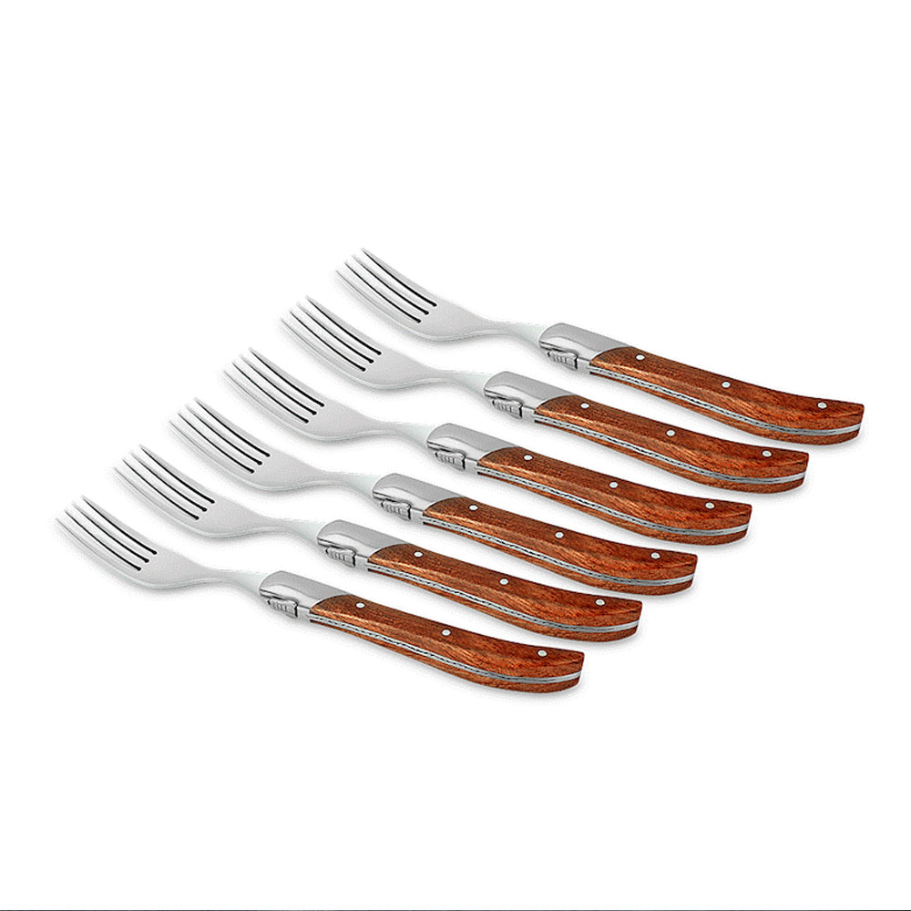 Den skarpe, tre-tandede gaffel glider let gennem kød og fuldender gourmetoplevelsen. Gaflerne leveres i en smuk gaveæske, hvilket gør dem til en oplagt gaveidé til madentusiasten – eller som en eksklusiv opgradering af dit eget bestik.